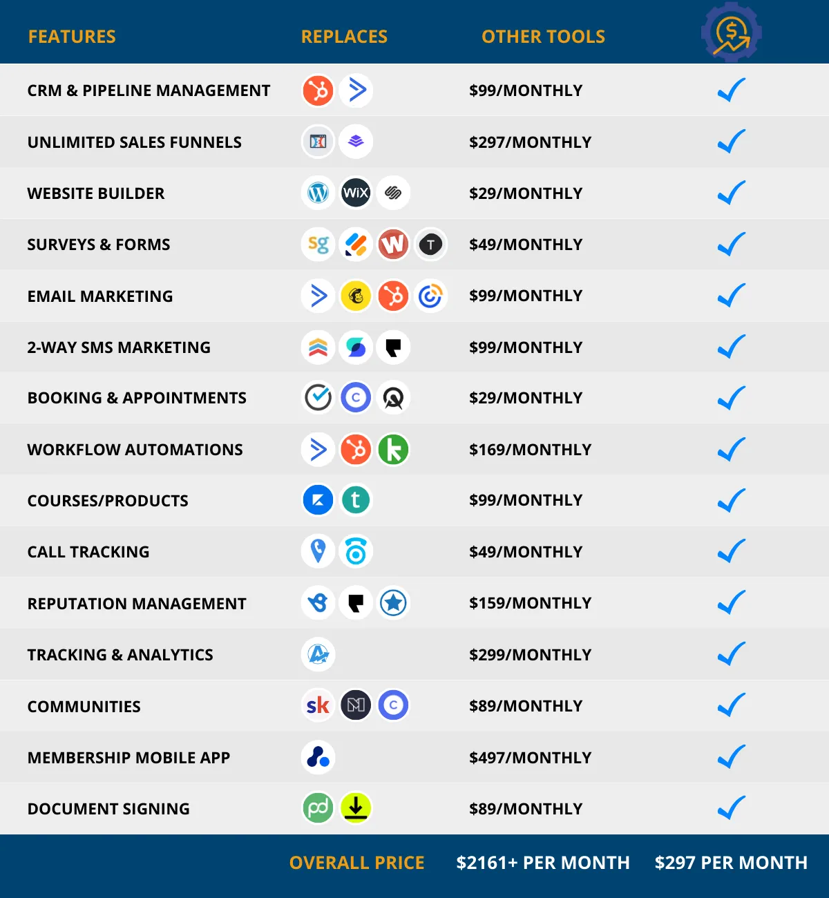 You probably spend more than $297 on business dinners each month. Your current scattered tools (CRM, email platform, website hosting, course platform) likely cost $800+ monthly anyway.